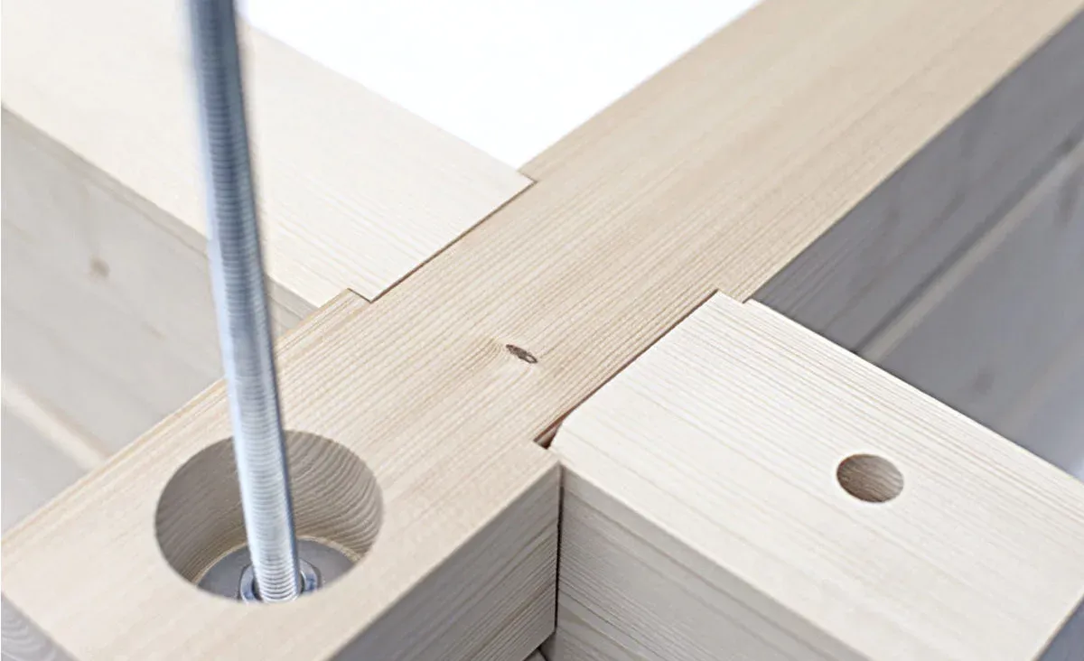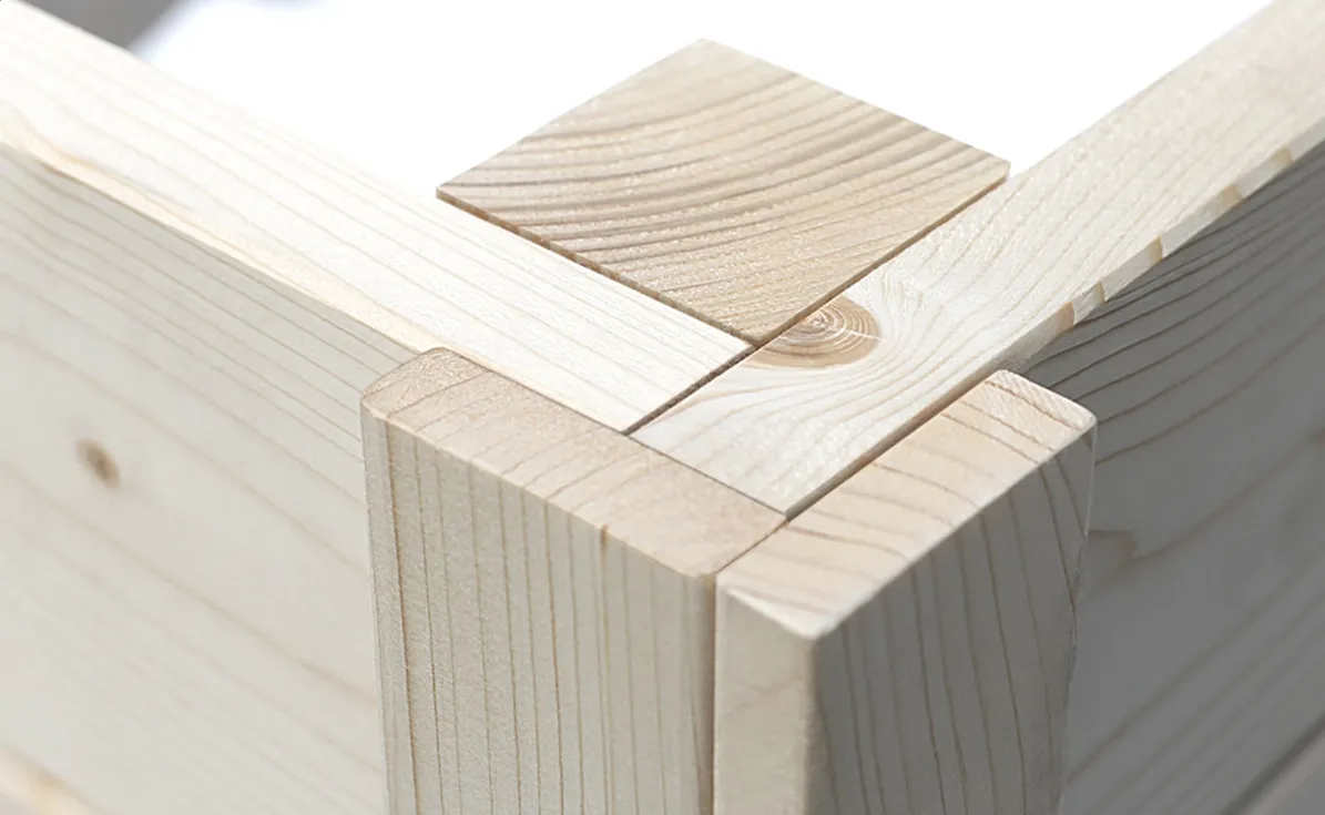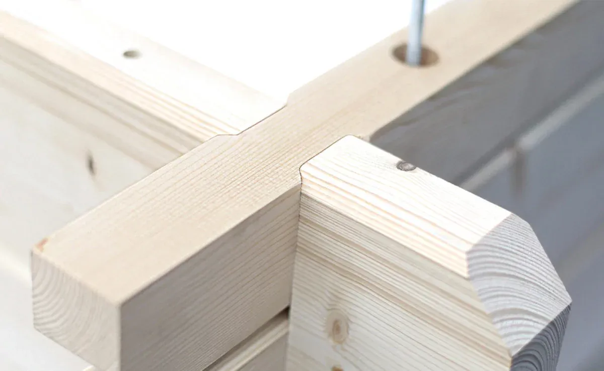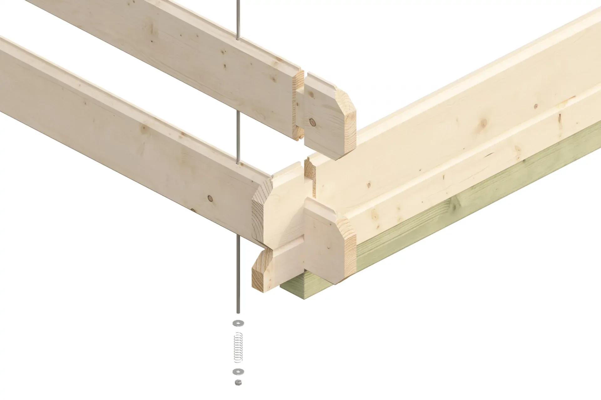 Unsere klassischen Blockhausecken zeichnen sich durch eine hohe Wind- und Witterungsdichte aufgrund der symmetrischen Fräsung in den Ausblattungen aus. Die Wandbohlen werden einfach übereinander gesteckt und das Haus mit dem innenliegenden, unsichtbaren Windverband gegen Schäden durch Unterwind oder Sog gesichert.